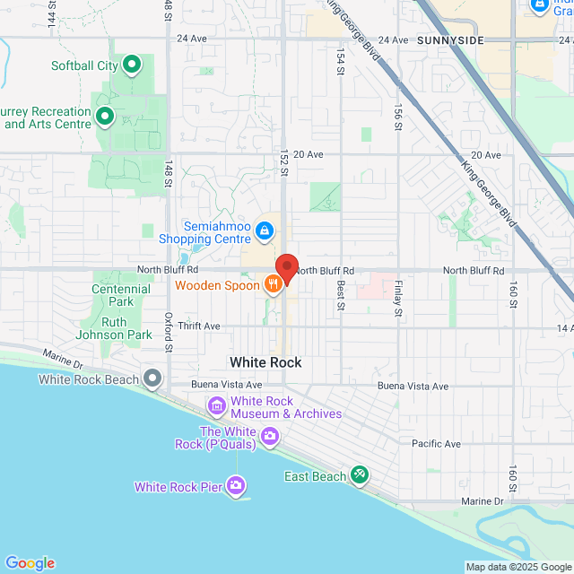 Parking information: At the back of the building on George Street, you’ll find a few 30-minute to 1-hour parking stalls. Additional street parking can be found in the surrounding area. For longer visits, there’s a city parking lot located at the corner of Johnston Road and Russell Avenue. Please avoid parking in any reserved or staff-only spots.